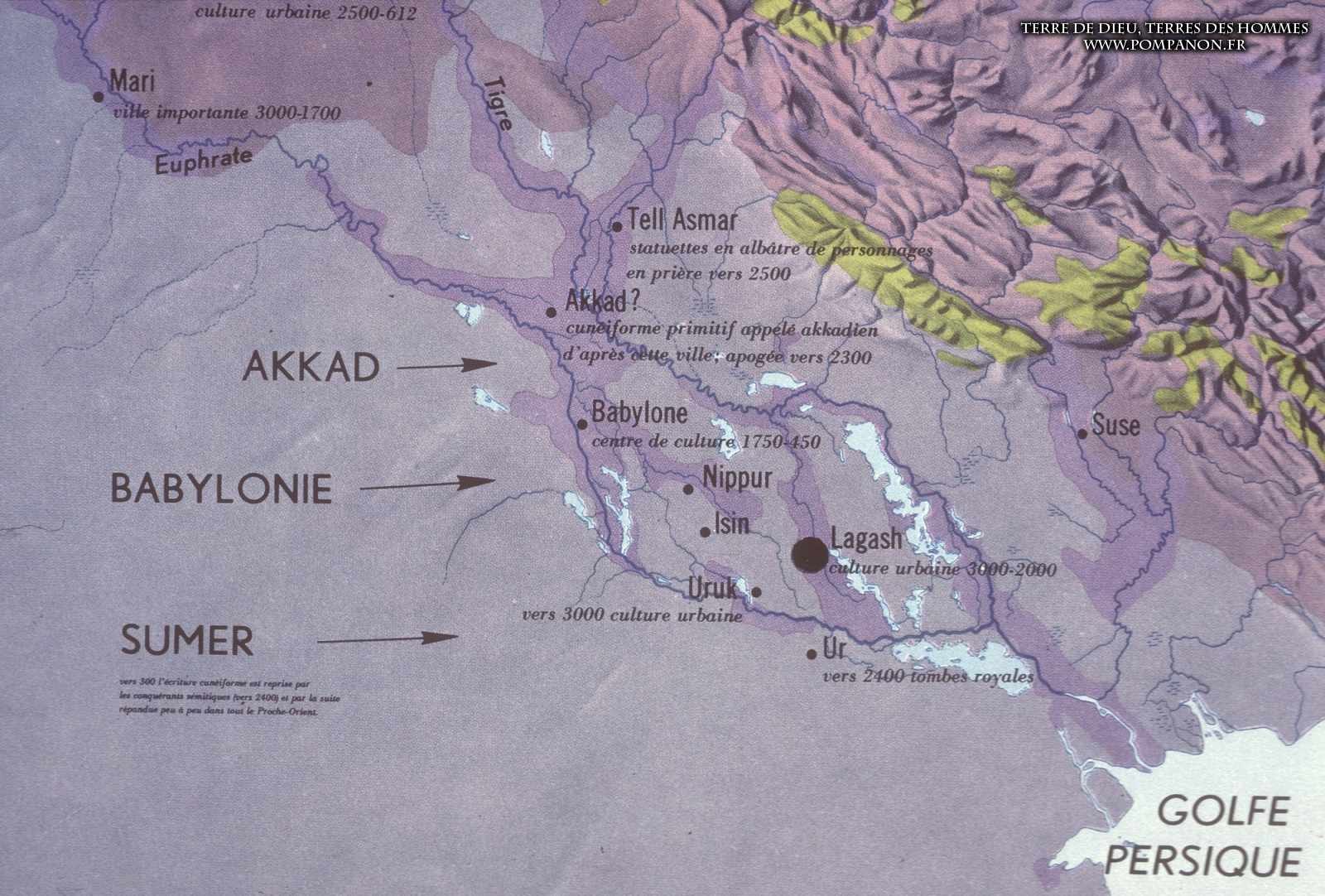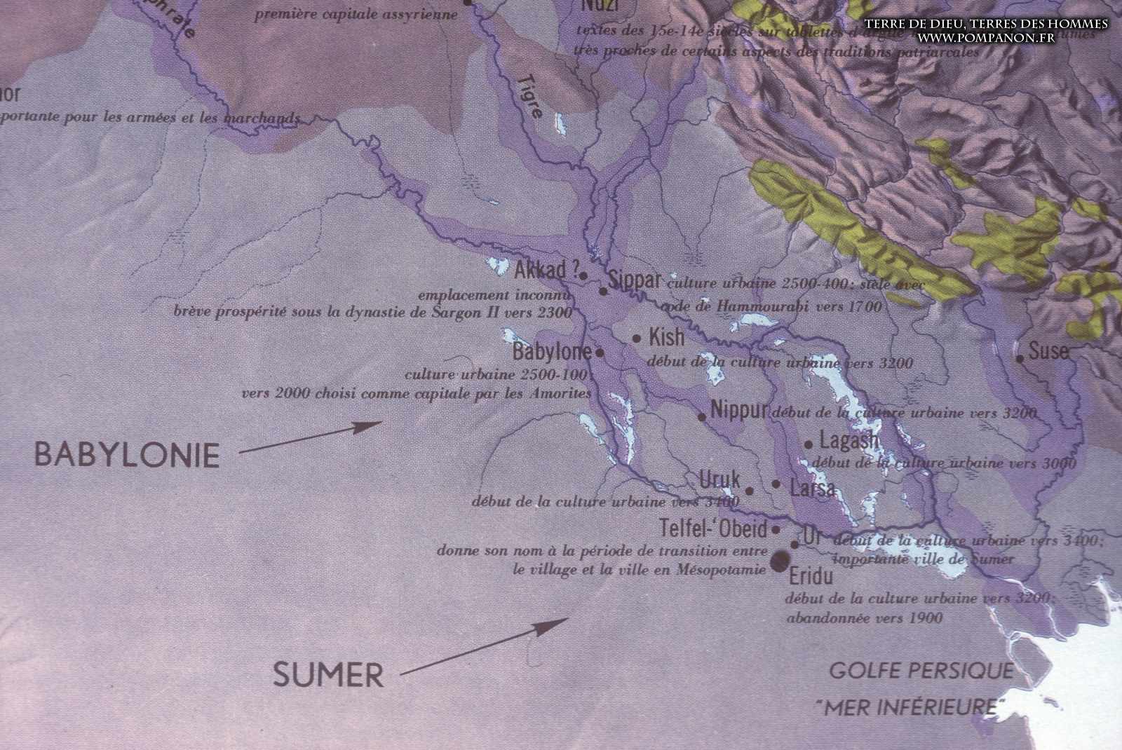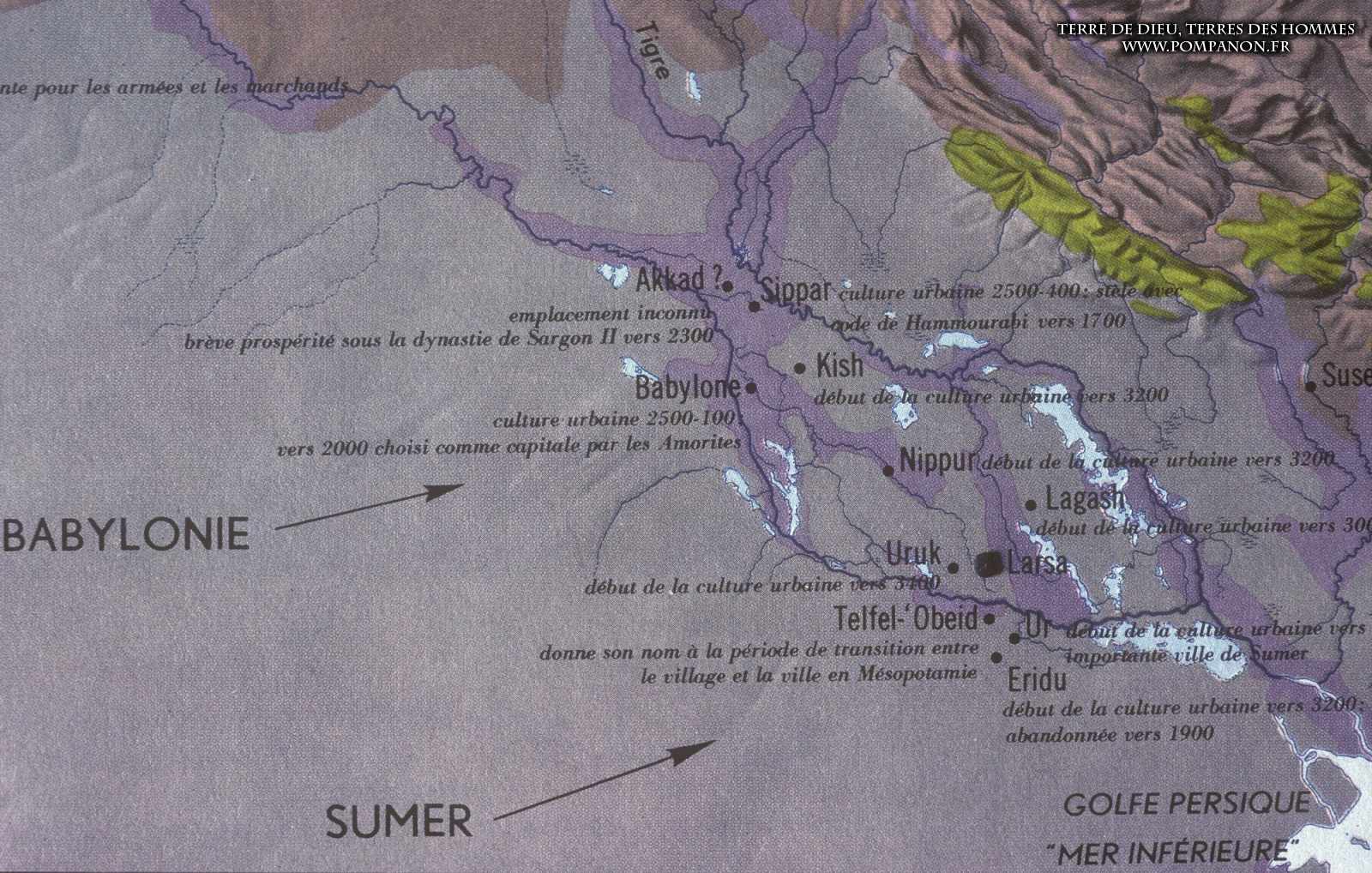 Civilisations sumérienne, Akkadienne, Babylonienne et Assyrienne.