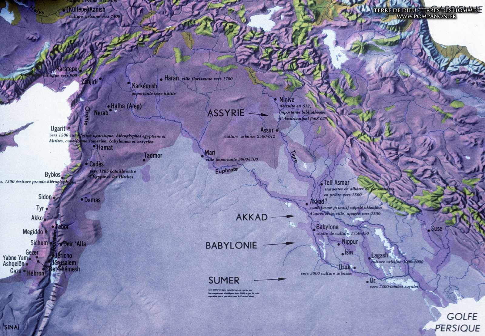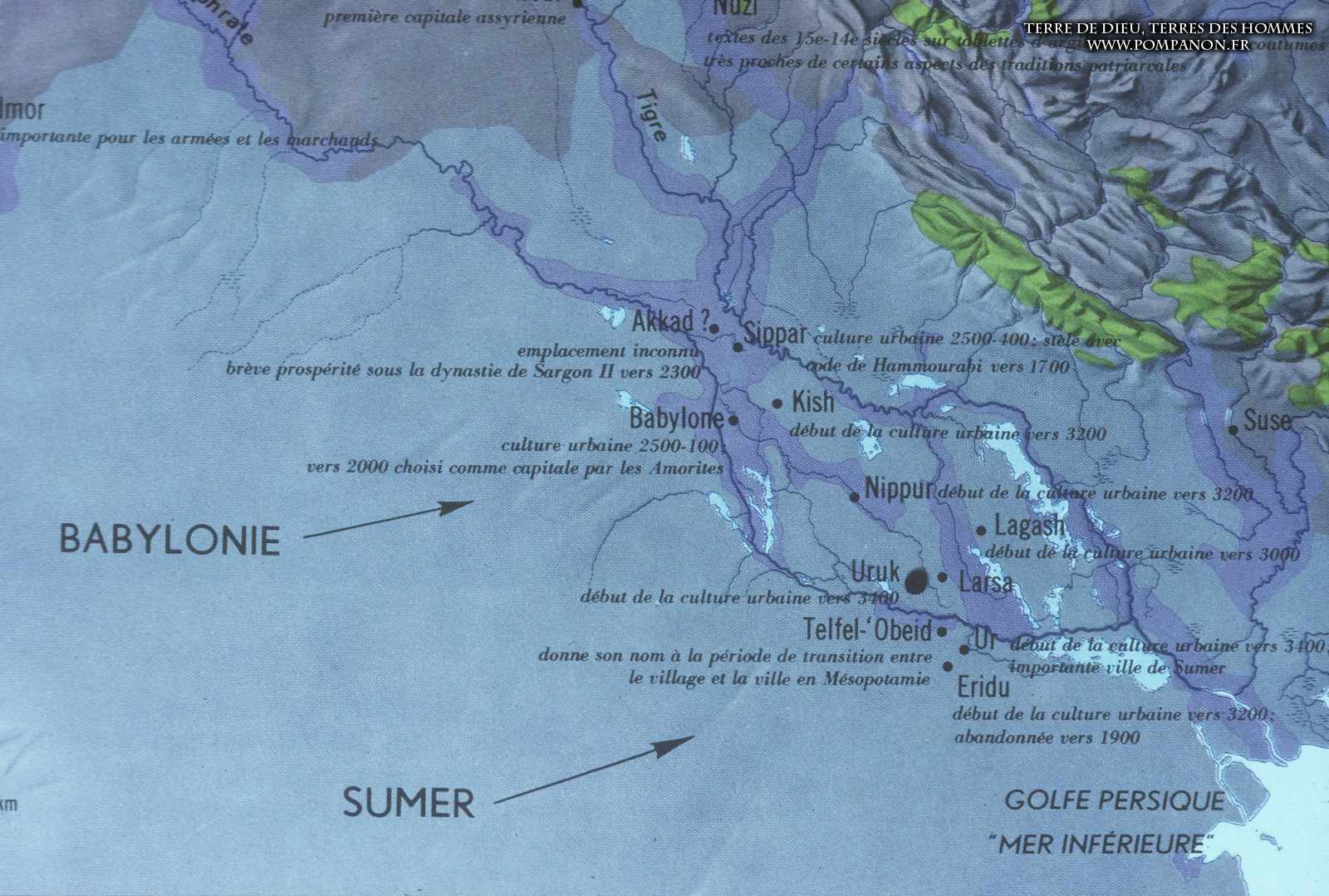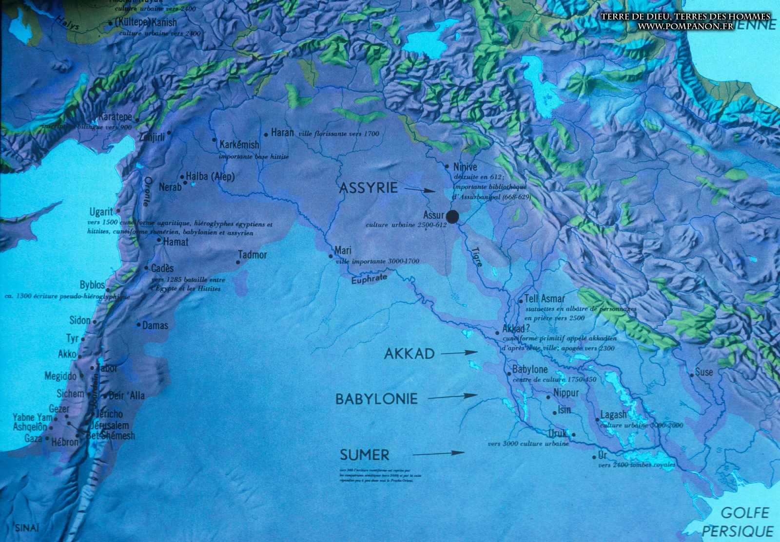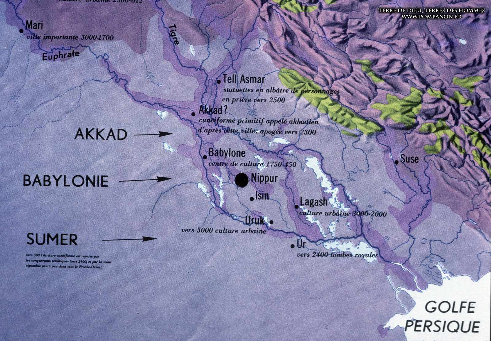 Civilisations sumérienne, Akkadienne, Babylonienne et Assyrienne.
