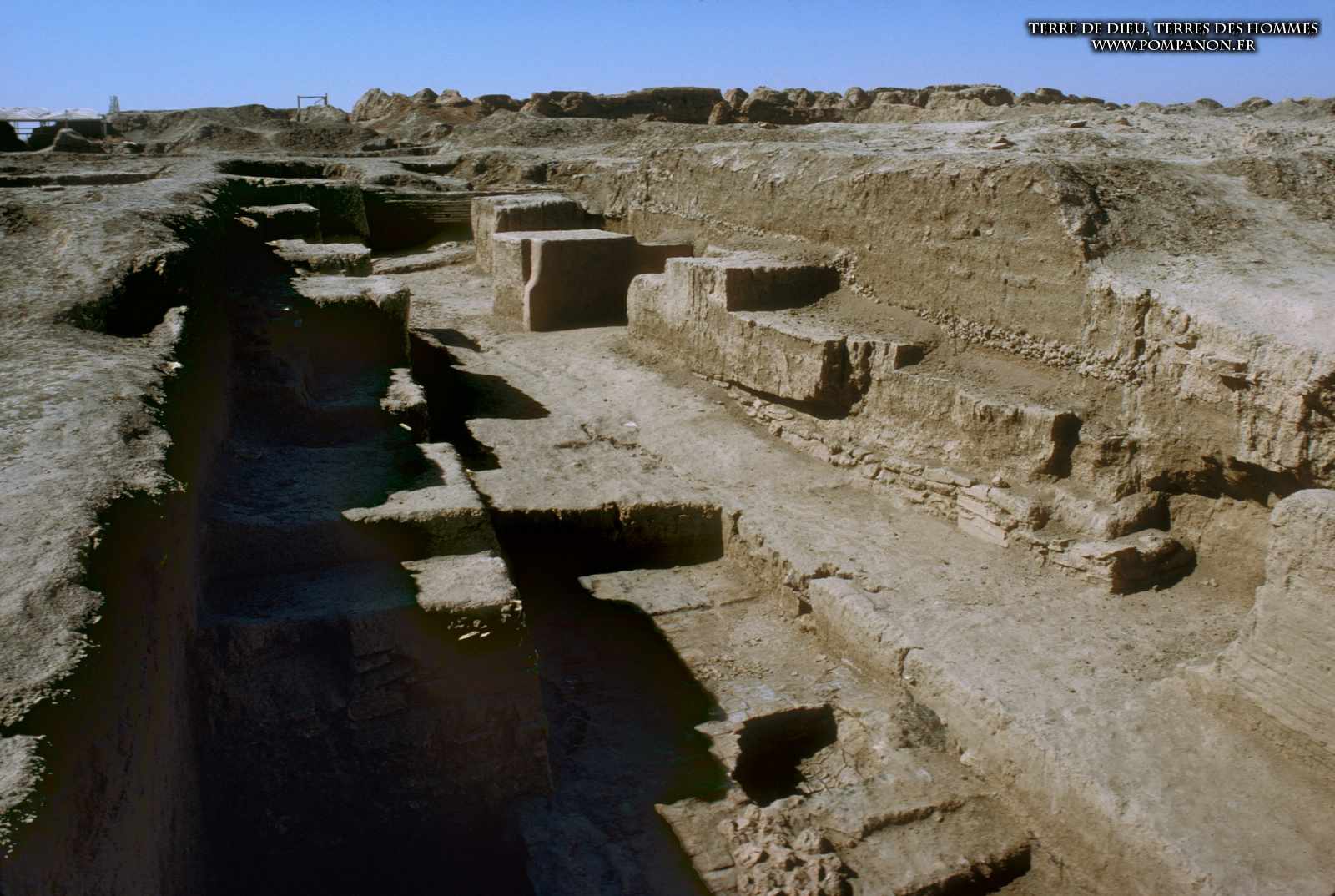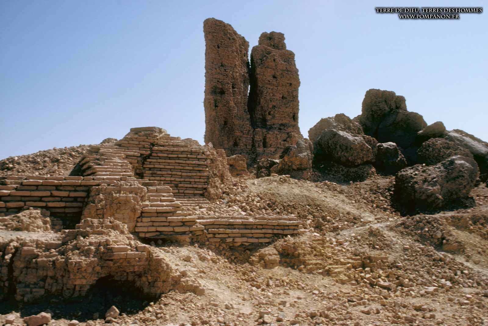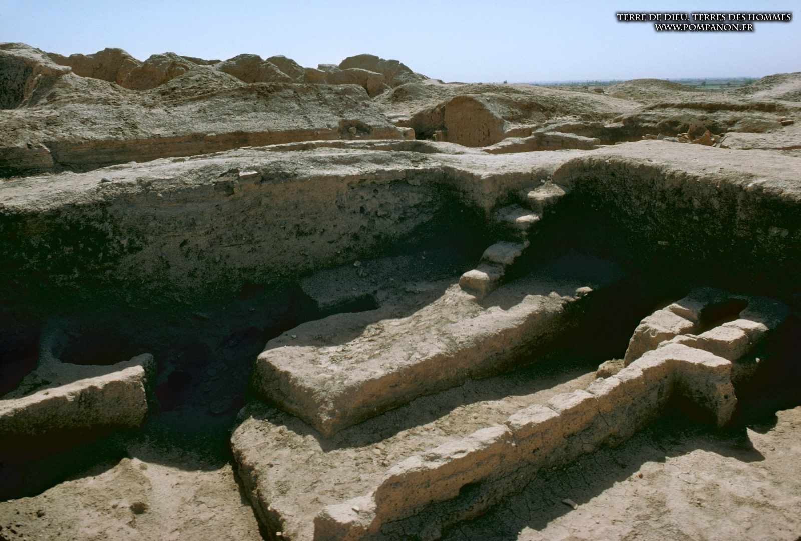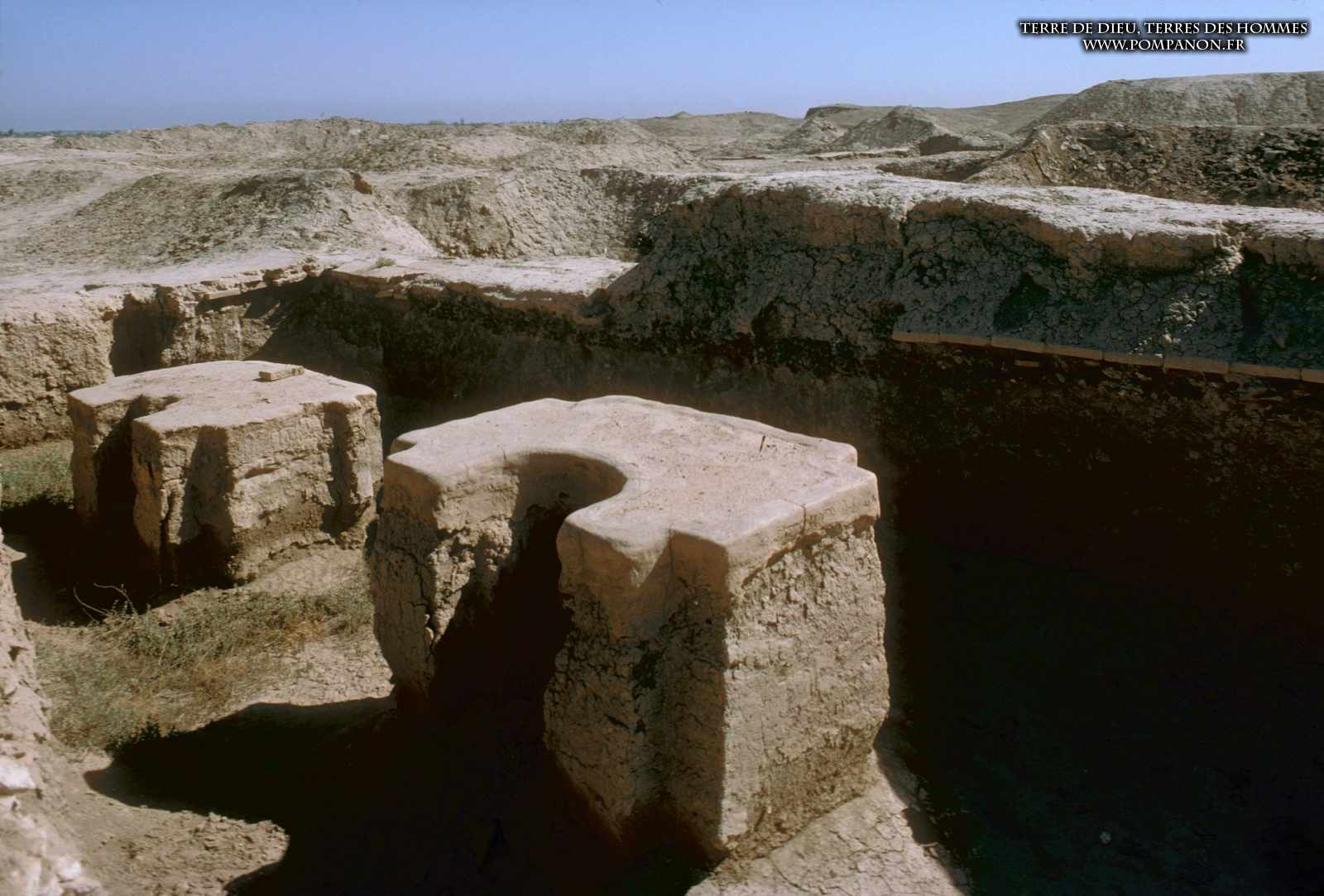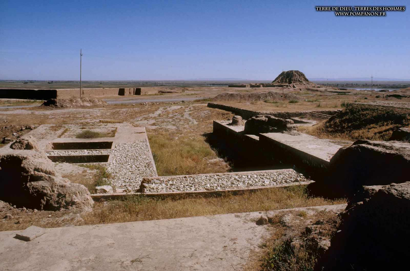 Photos des sites archéologiques de la Mésopotamie ancienne (actuellement l’Irak et la Syrie), des monuments (temples et ziggurats) et des objets trouvés dans les fouilles.