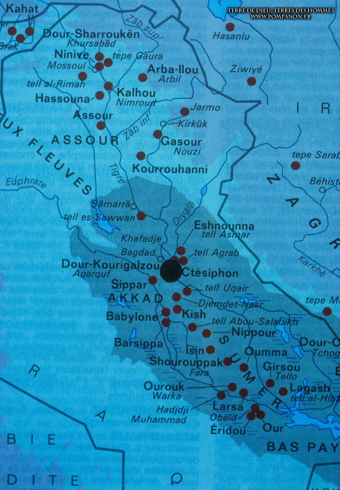 Images des sites suivants : Kish, Nippur, Uruk, Ur et les marécages, Eridu, Girsu près de Lagash, Babylone et l’Euphrate, Borsippa (Birs Nimroud), Ctésiphon, Dour-Kurigalzou (Aqar Qouf), Cunaxa, le Tigre à Balad, Samarra, Arbèles, Assur, Khorsabad, Nimrud, Dûr-Sharrukin (Korsabad), Ninive, Bavian, Hatra, Mari, Doura Europos, Zénobia, Qalaat Djabar et le lac Assad, Haran.