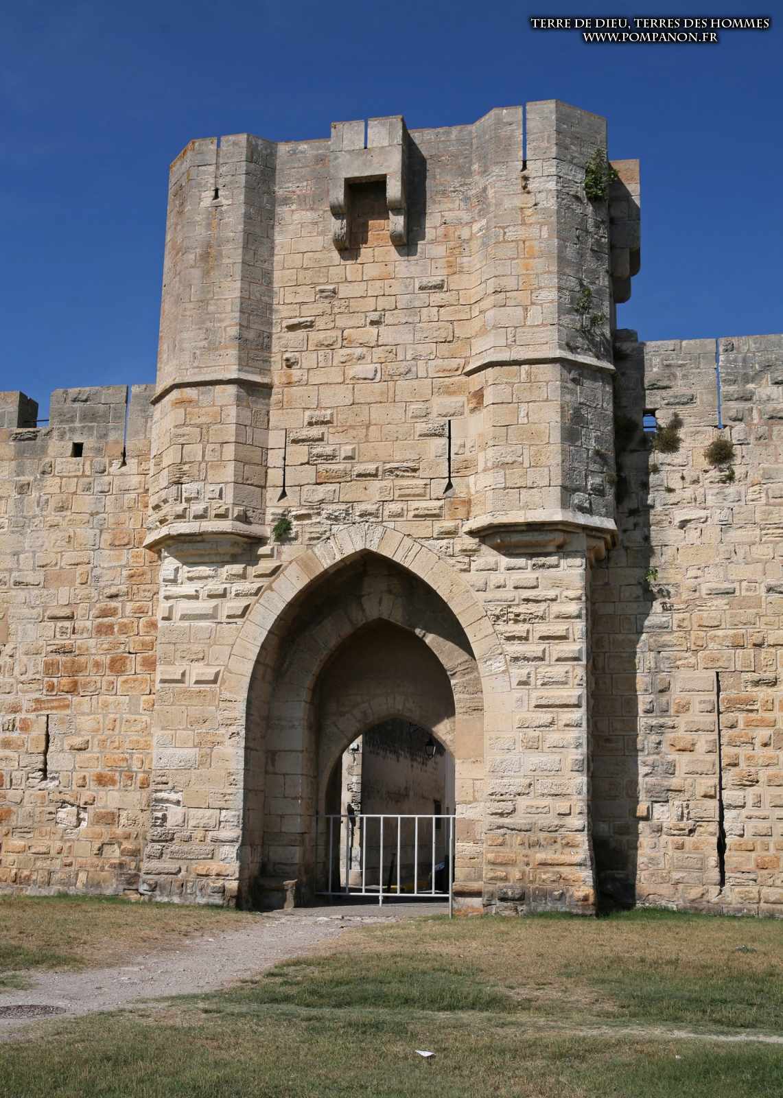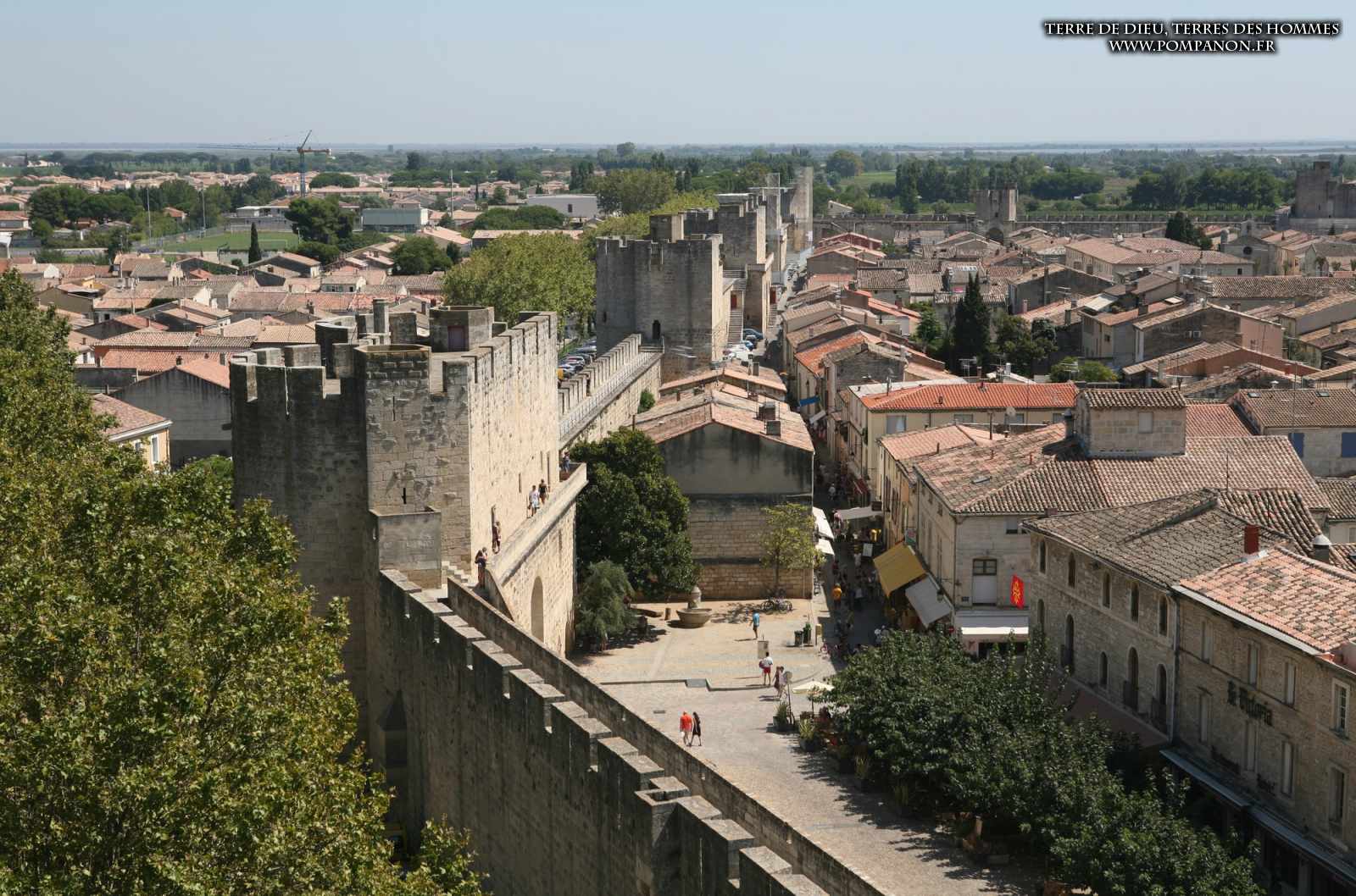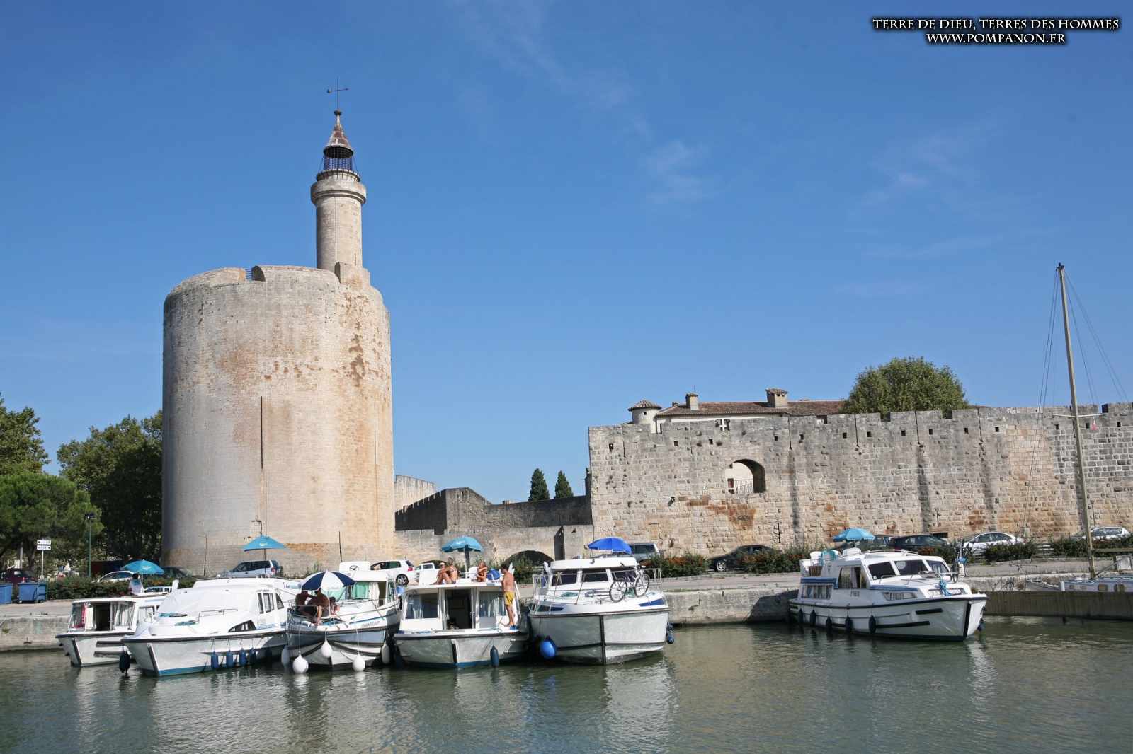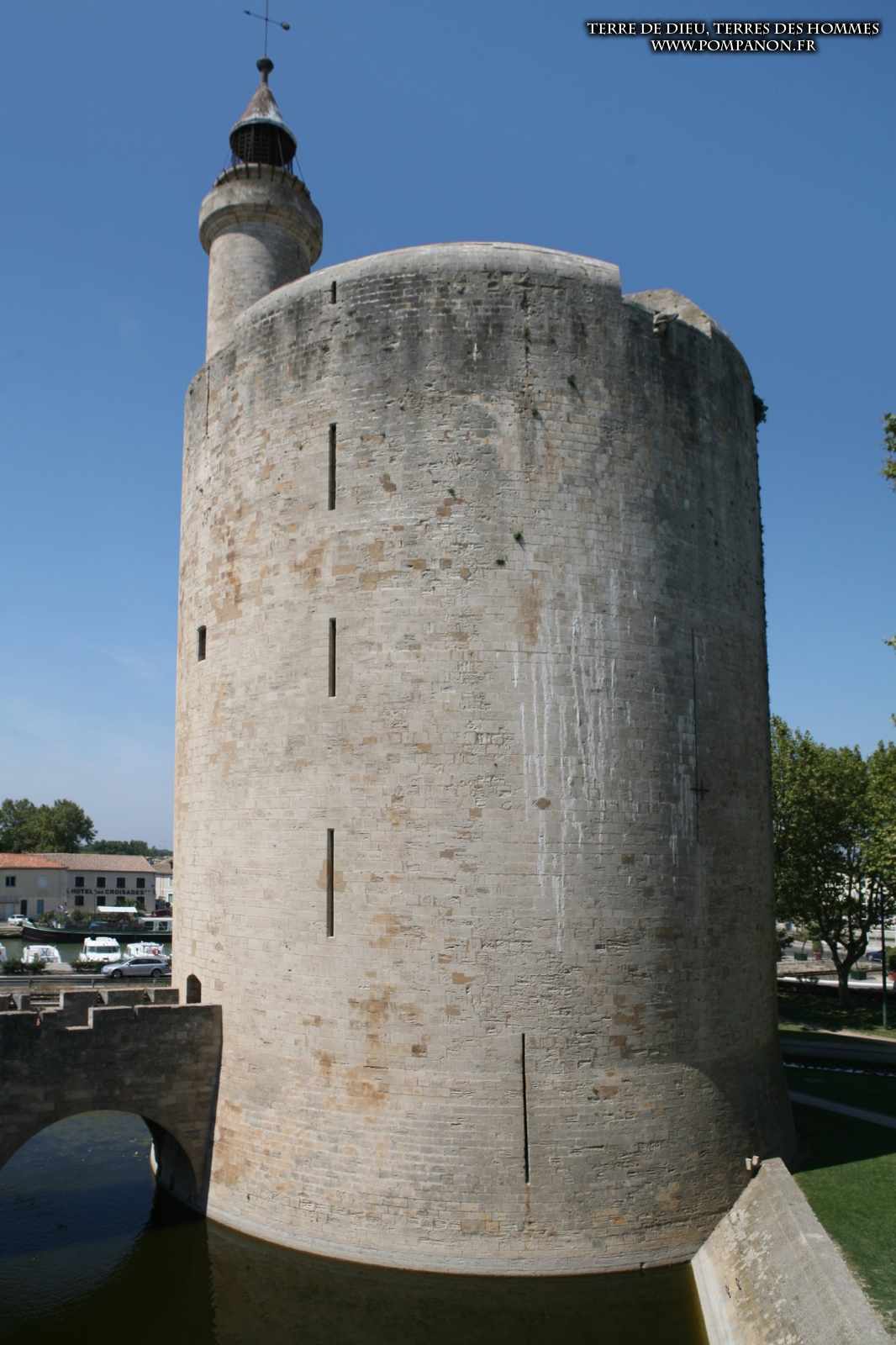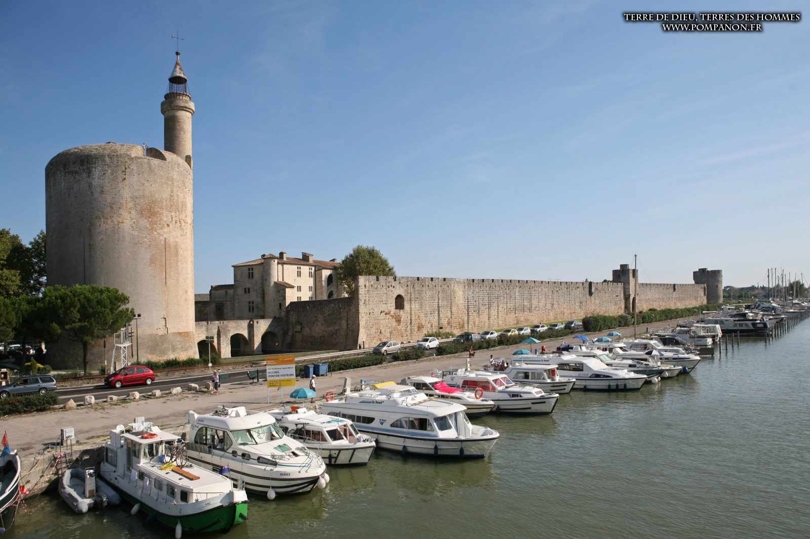Photos de son rempart médiéval intact, construit par saint Louis au XIII°s, du donjon, des douves, des tours, des portes de la ville et de son port de plaisance.