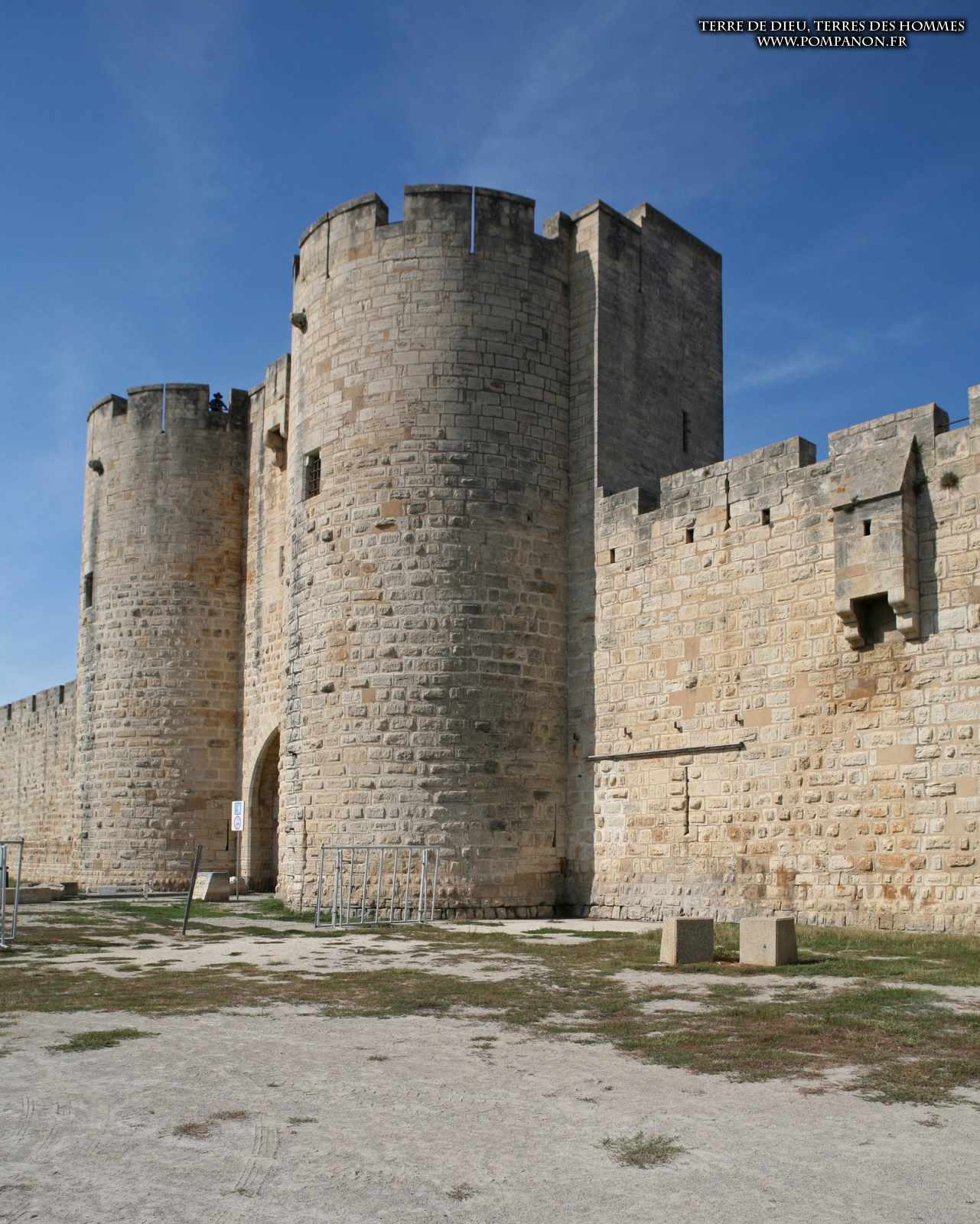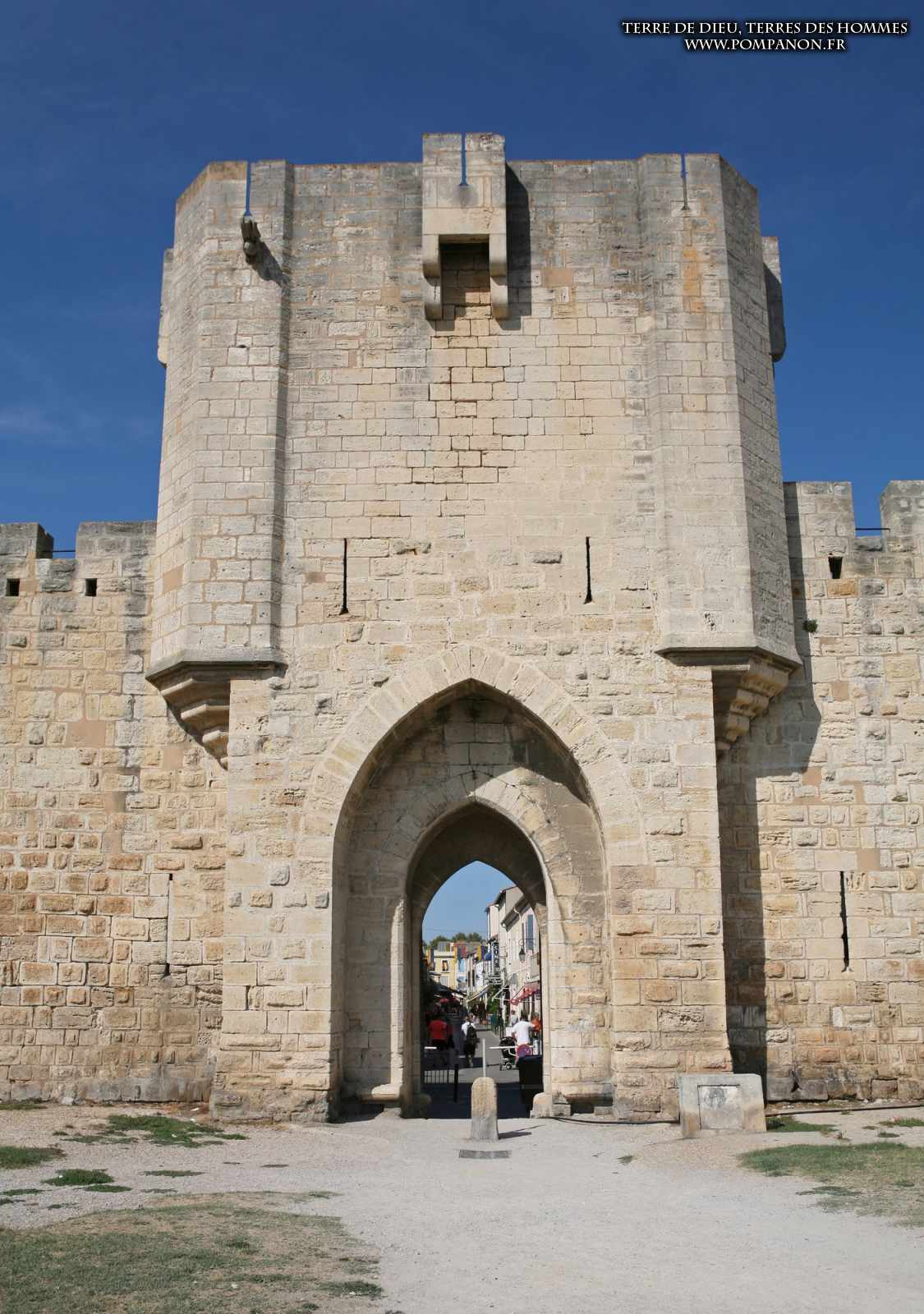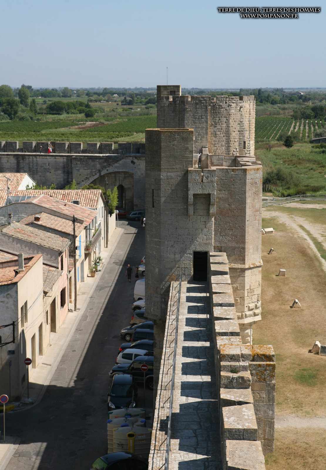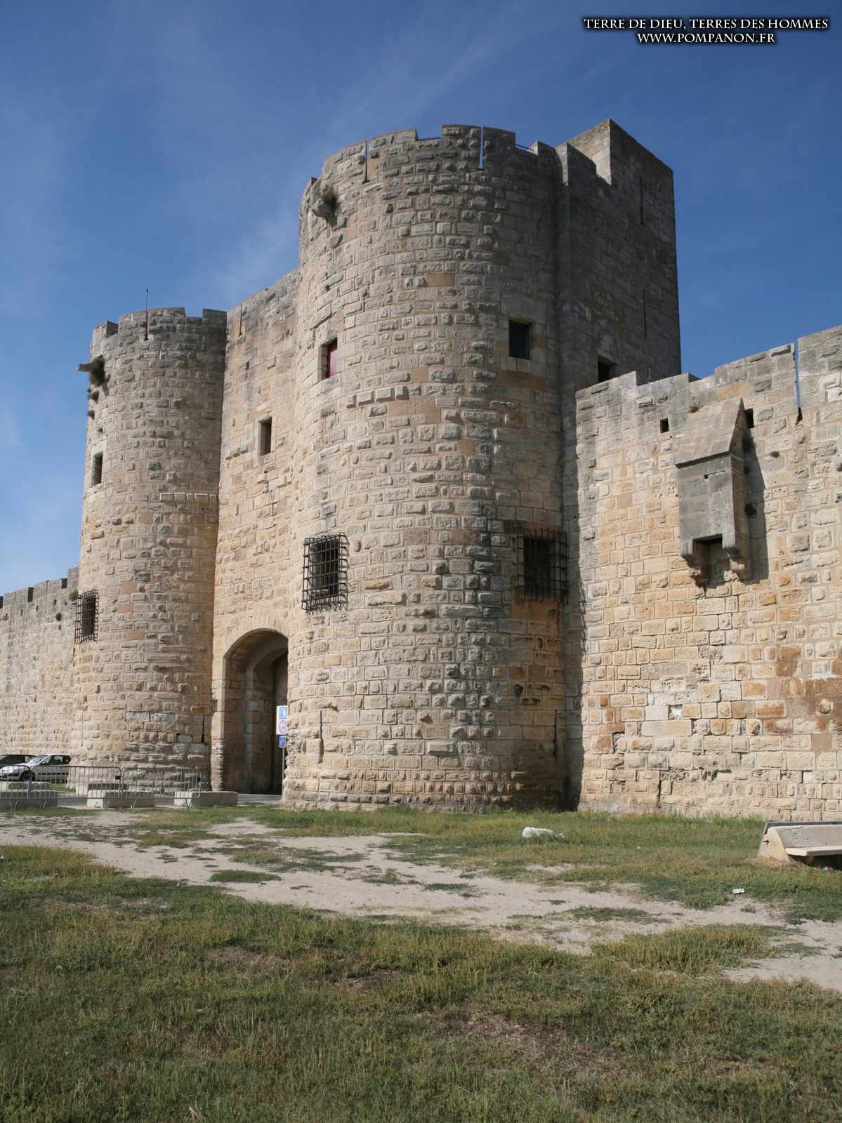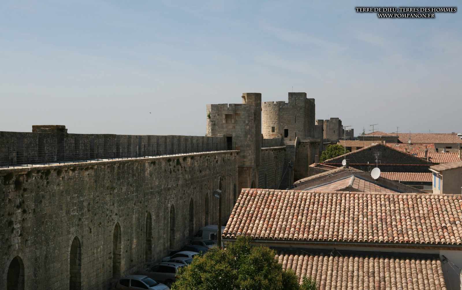 Photos de son rempart médiéval intact, construit par saint Louis au XIII°s, du donjon, des douves, des tours, des portes de la ville et de son port de plaisance.