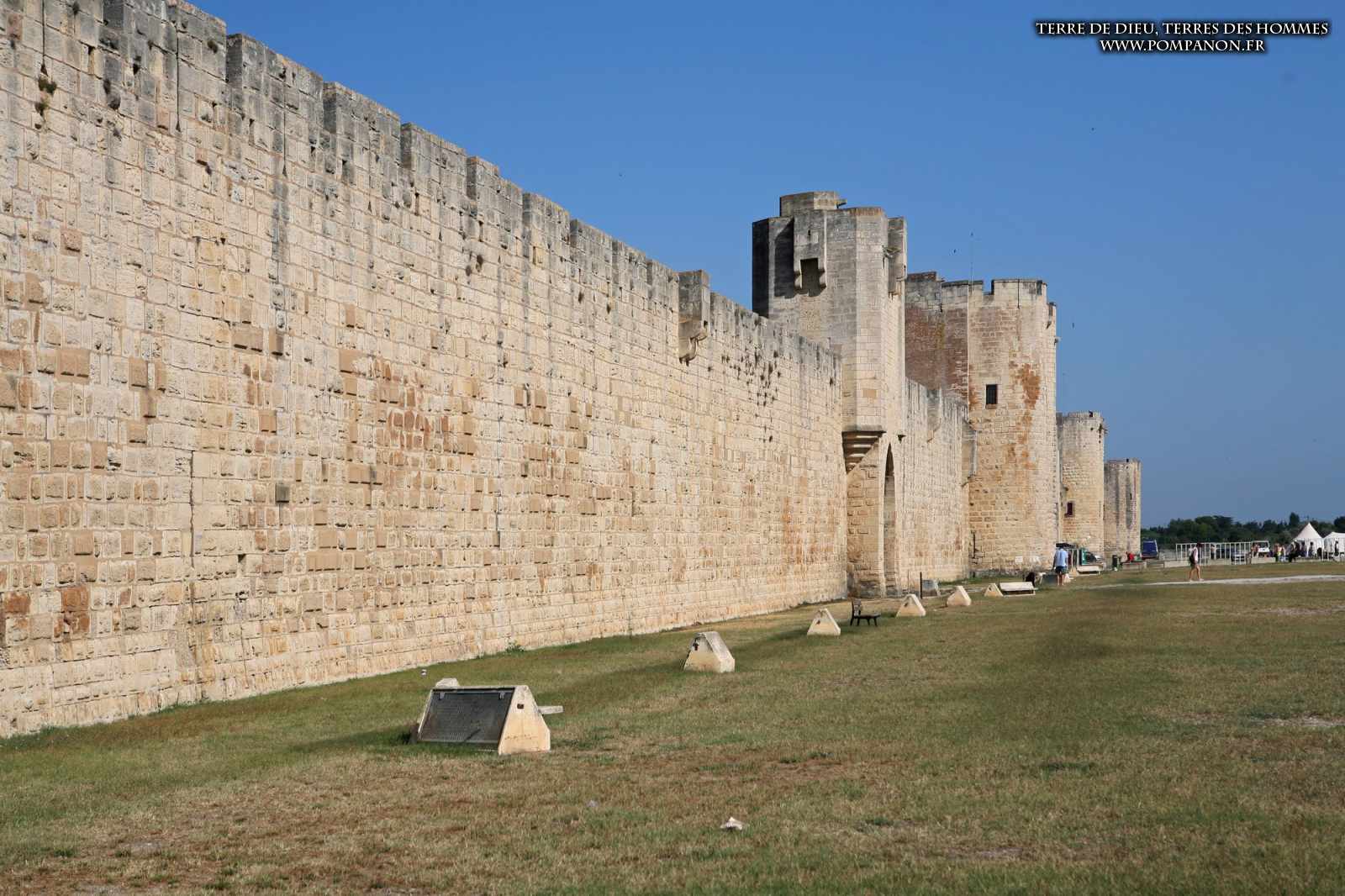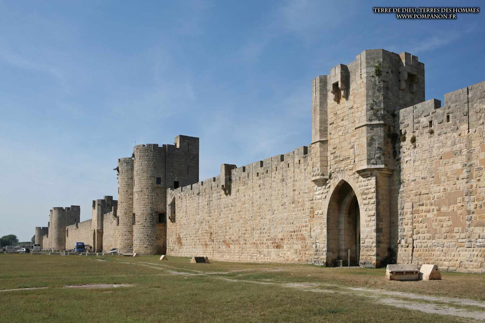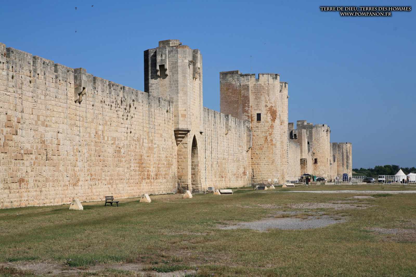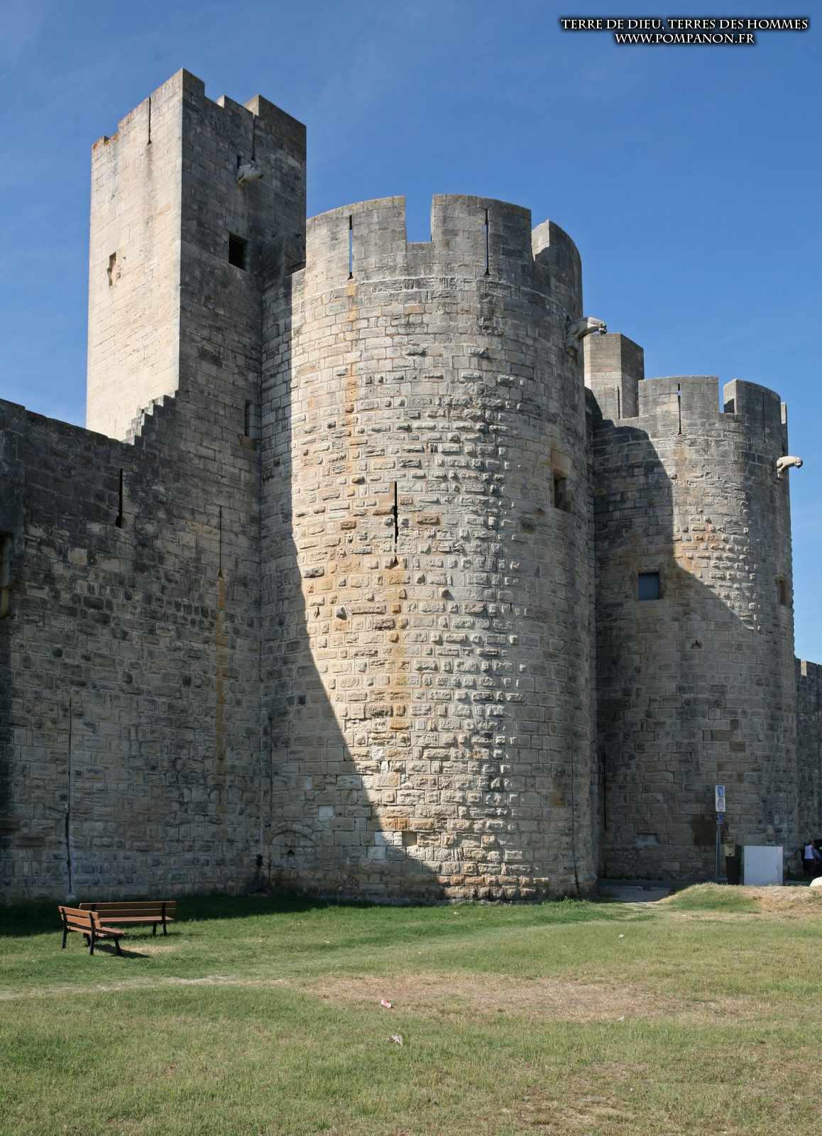 Photos de son rempart médiéval intact, construit par saint Louis au XIII°s, du donjon, des douves, des tours, des portes de la ville et de son port de plaisance.