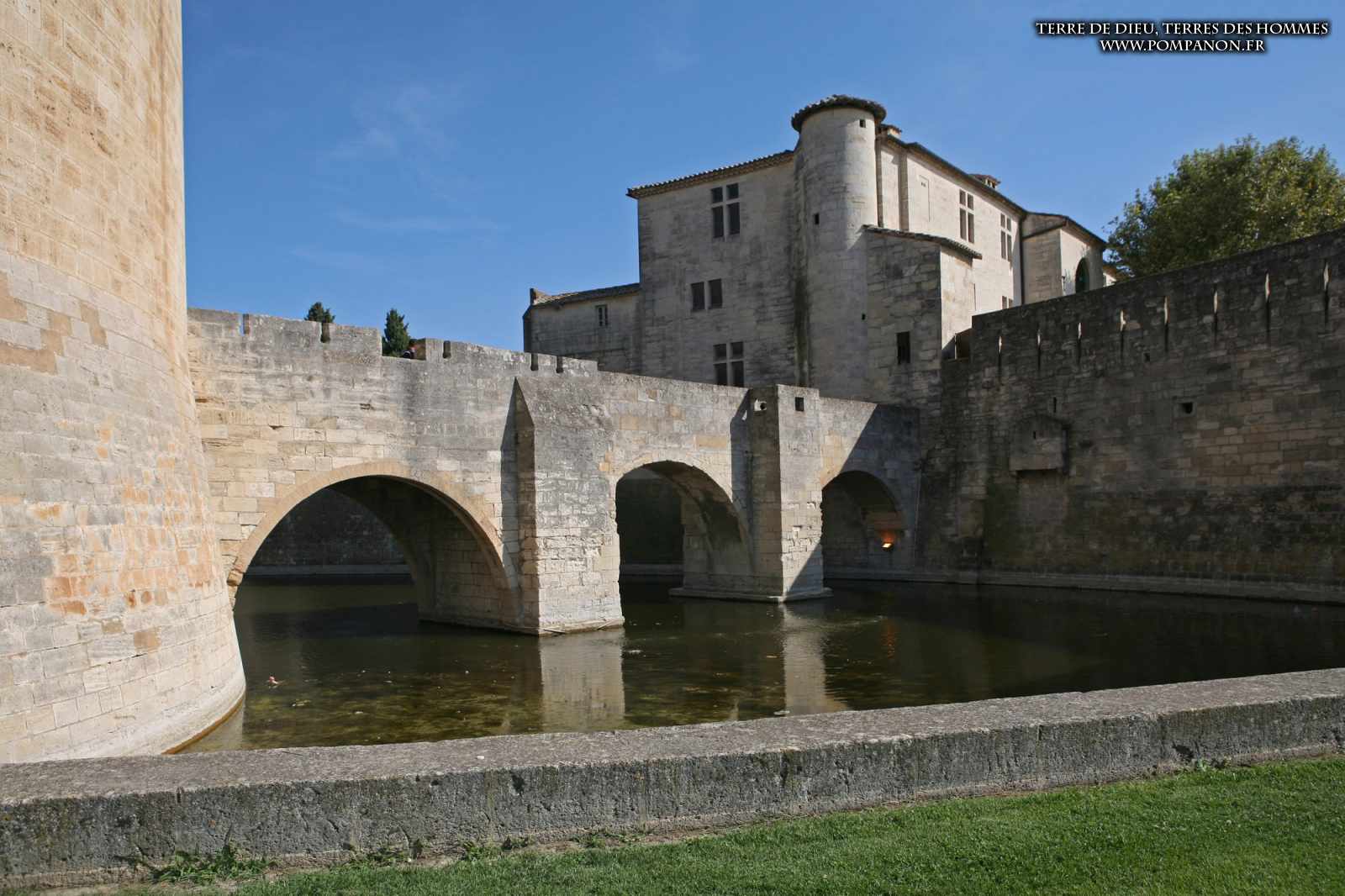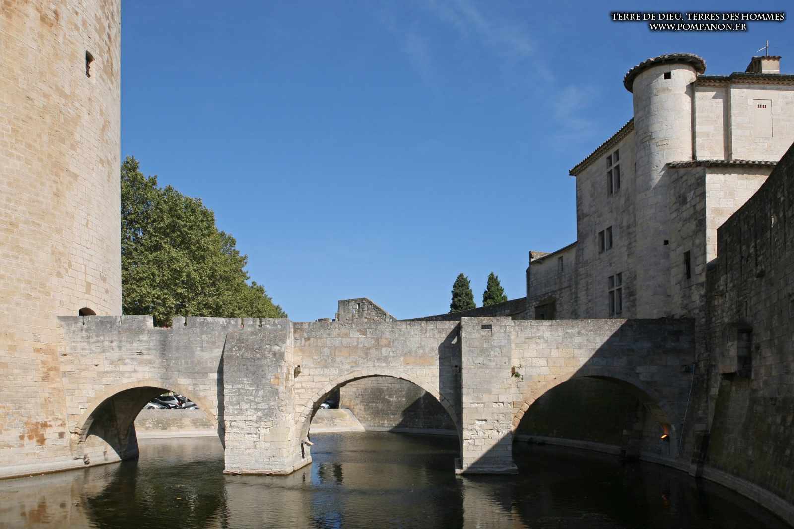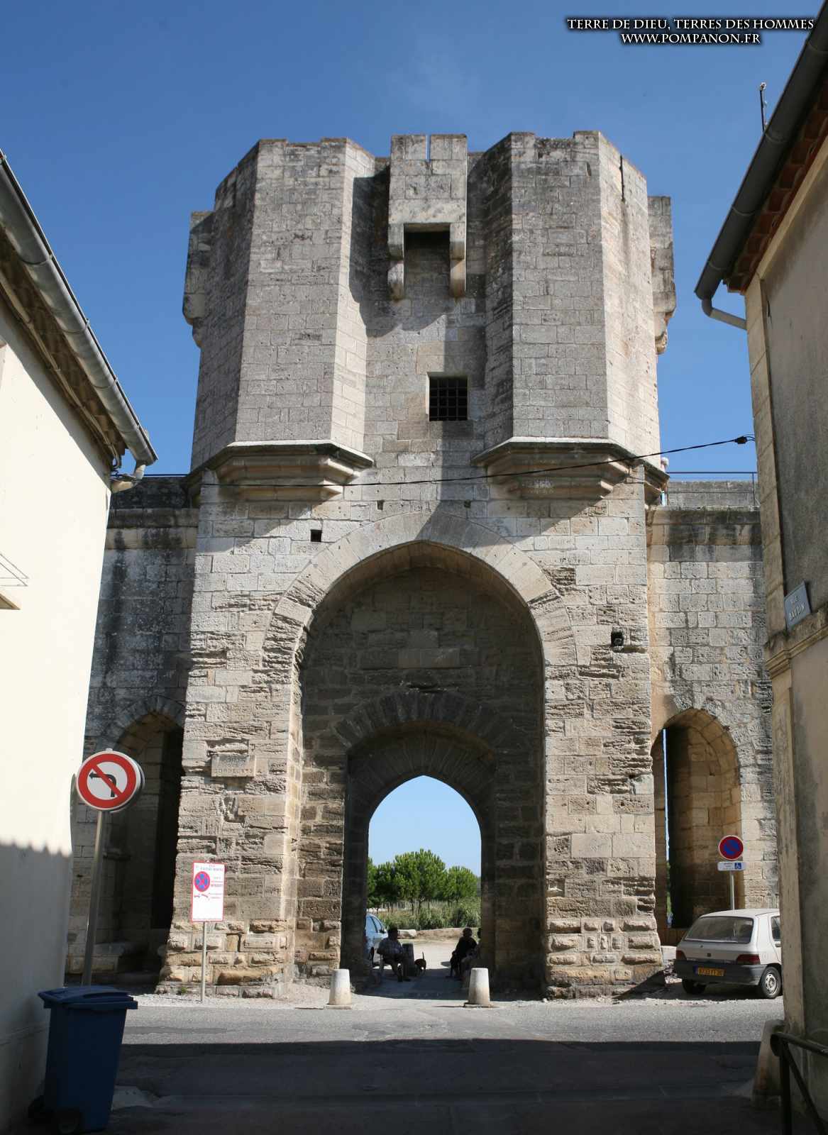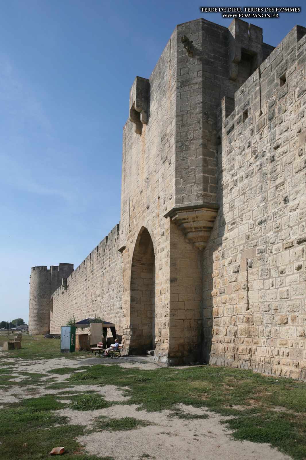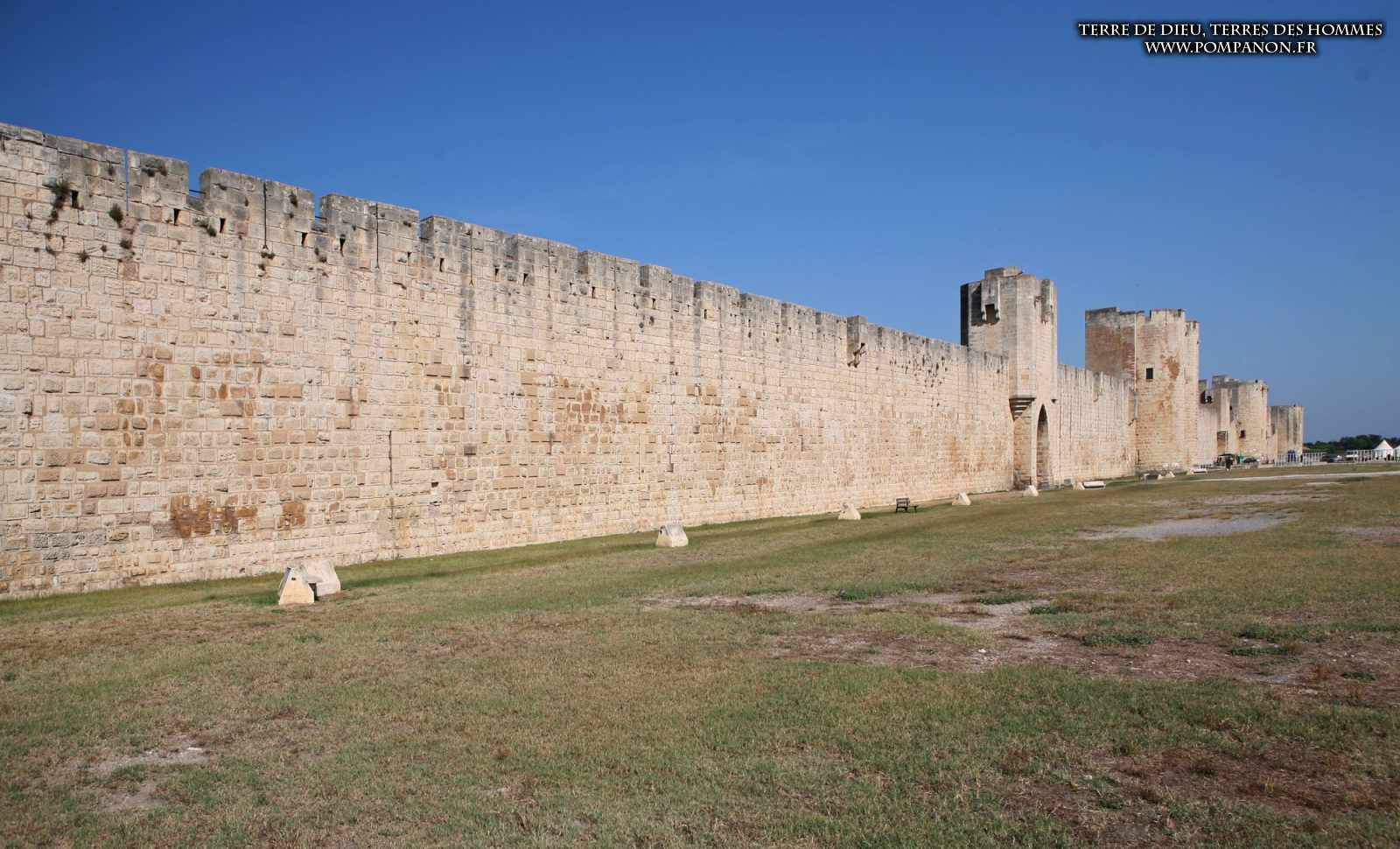 Photos de son rempart médiéval intact, construit par saint Louis au XIII°s, du donjon, des douves, des tours, des portes de la ville et de son port de plaisance.