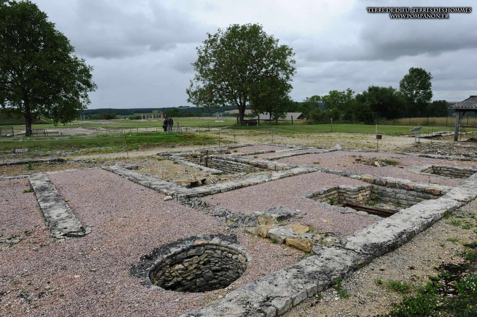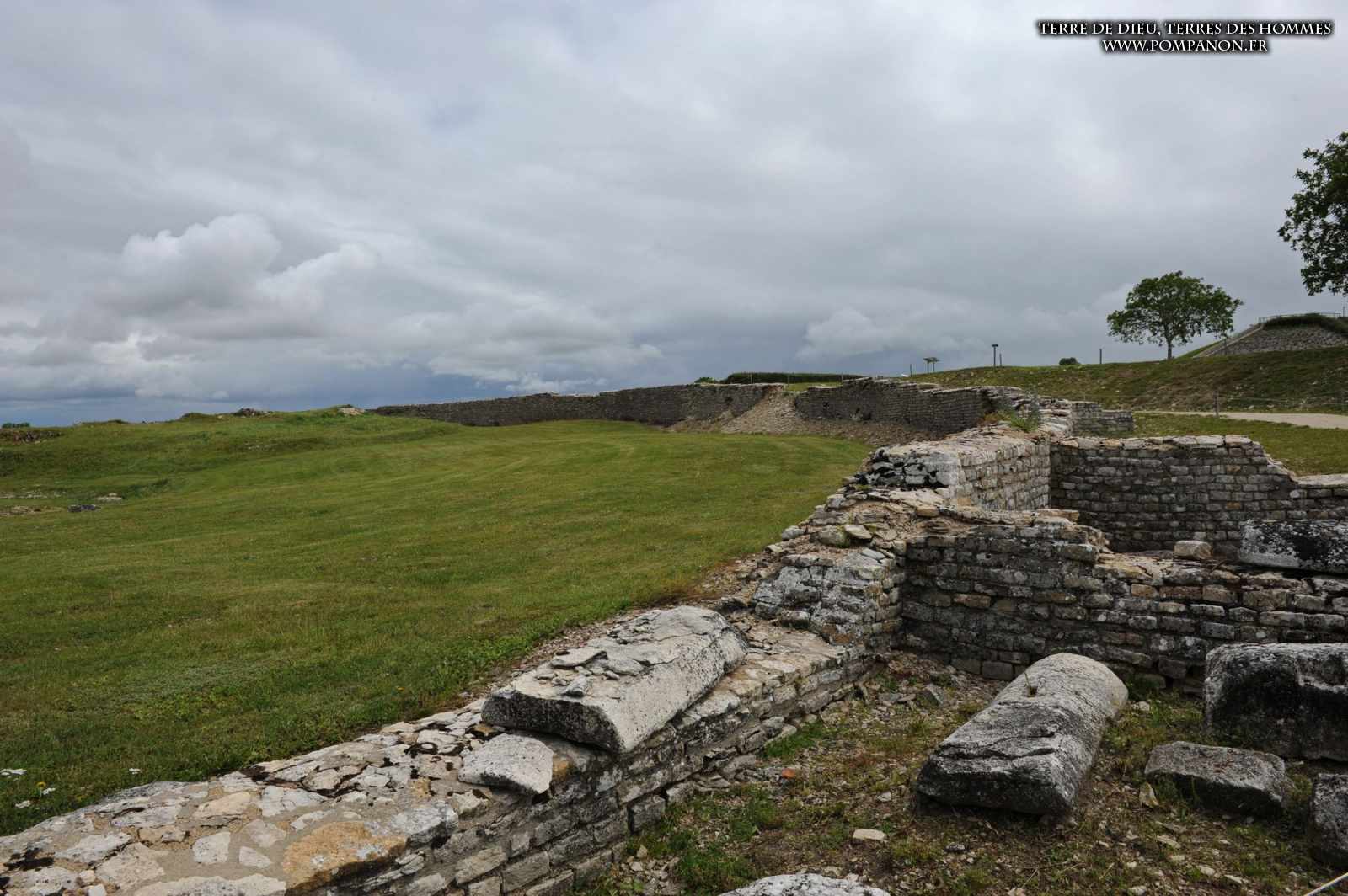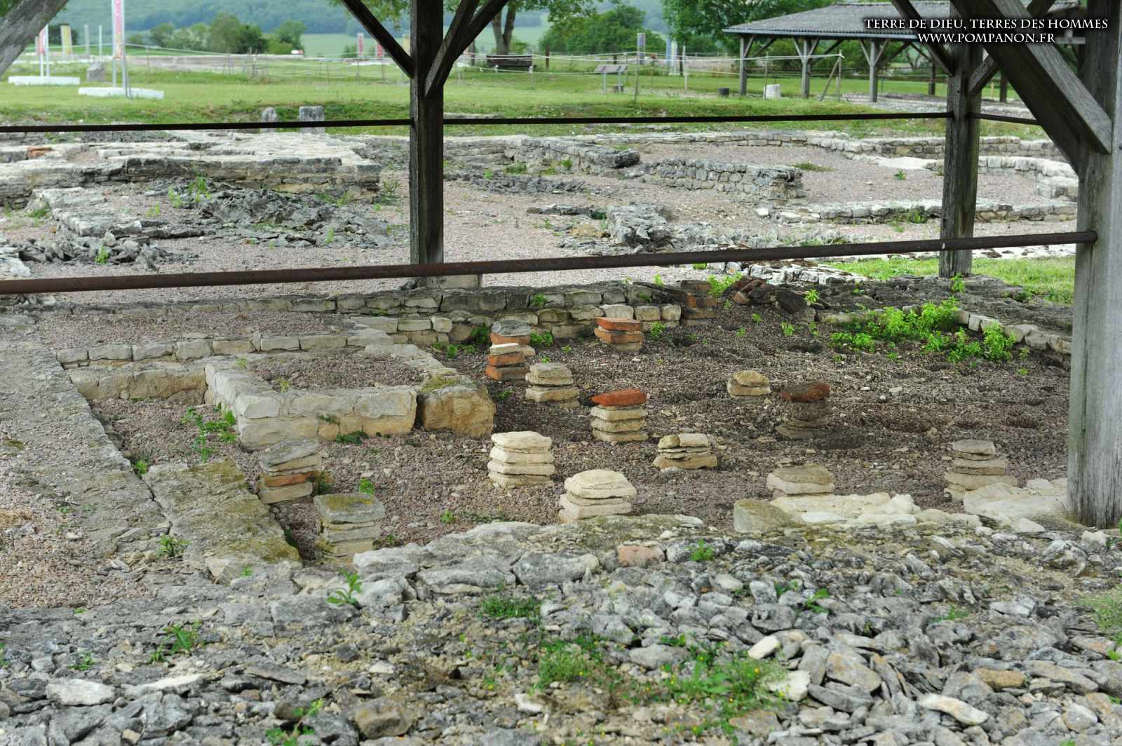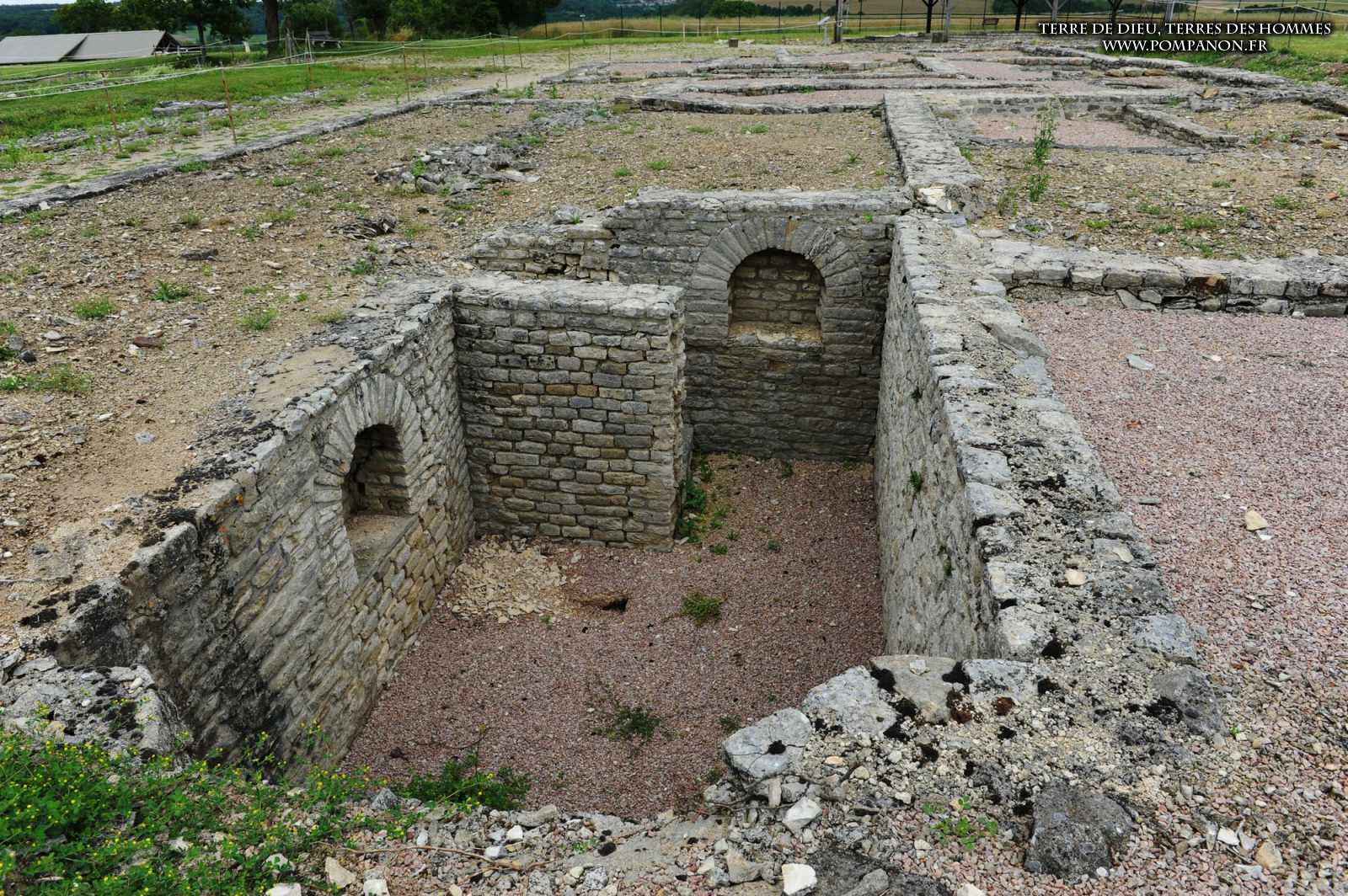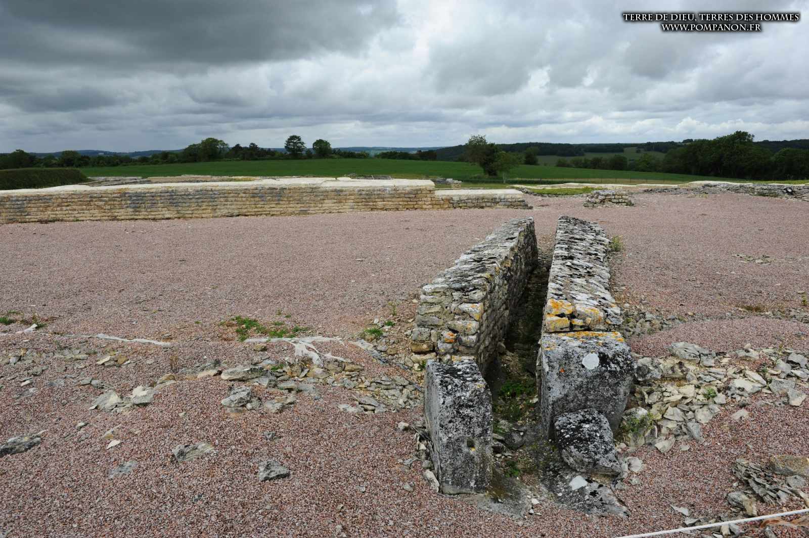 Photos de la ville gallo-romaine d’Alesia occupée du Ier au Ve siècles, après la défaite de Vercingétorix. Images du théâtre, du temple et du Forum. Le sanctuaire d’Ucuetis, divinité protectrice des forgerons, comportait un cour intérieure à colonnes et une crypte. Dans le quartier d’habitation et d’artisanat, on découvre une rue à portiques des fours de bronziers, une maison avec un chauffage par le sol (Hypocauste), un puits et des caves.