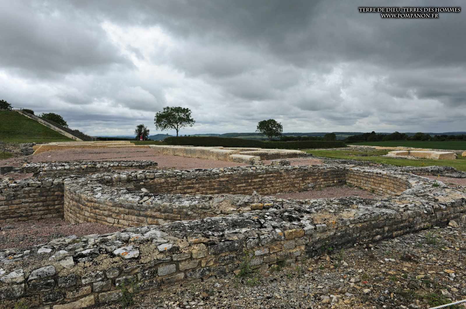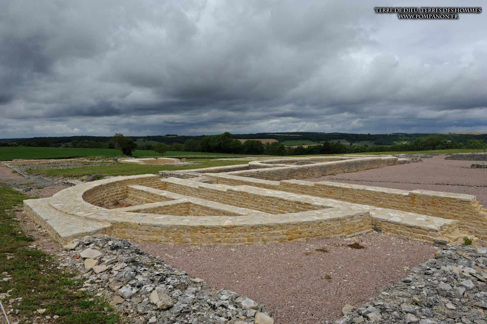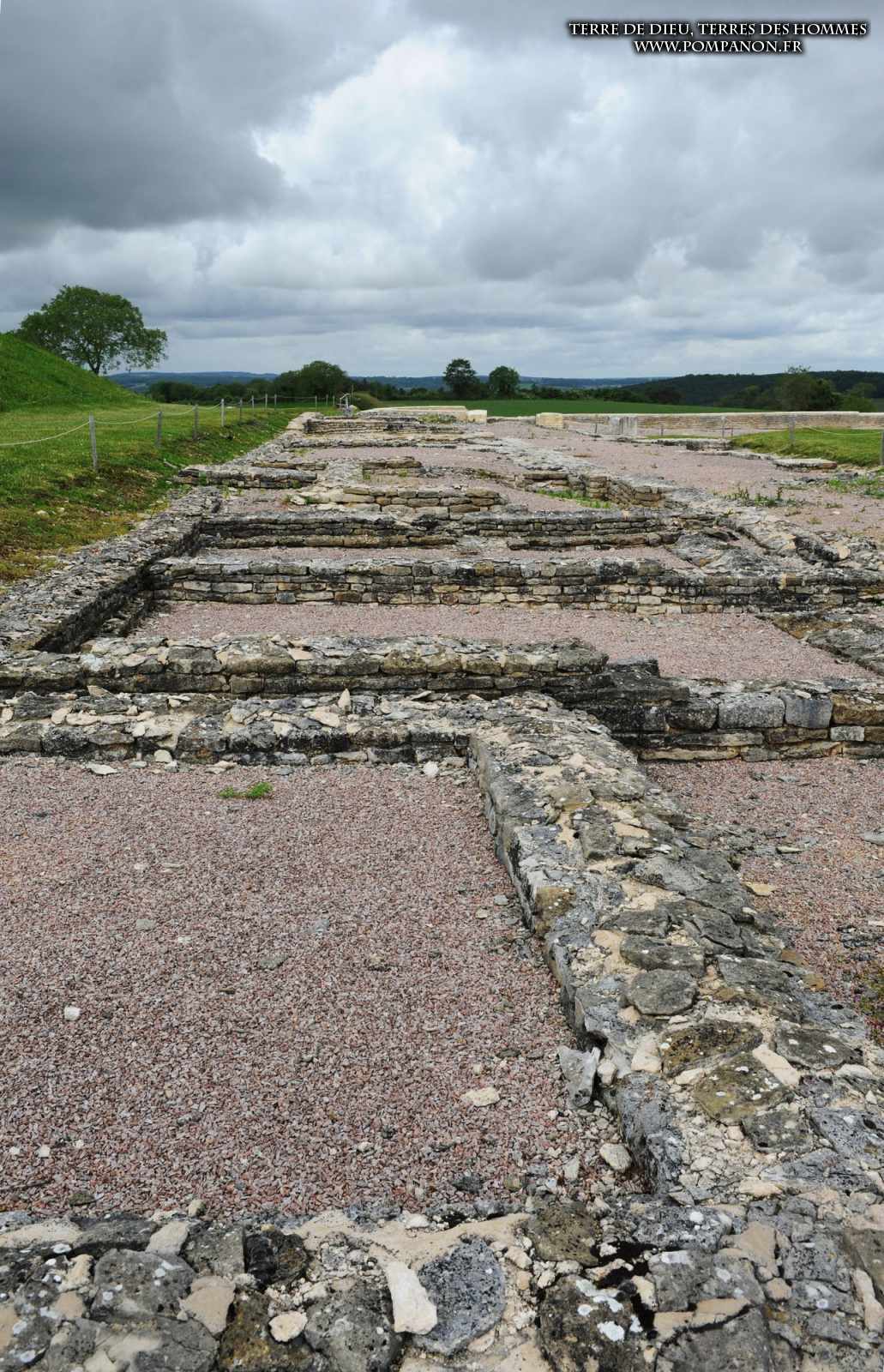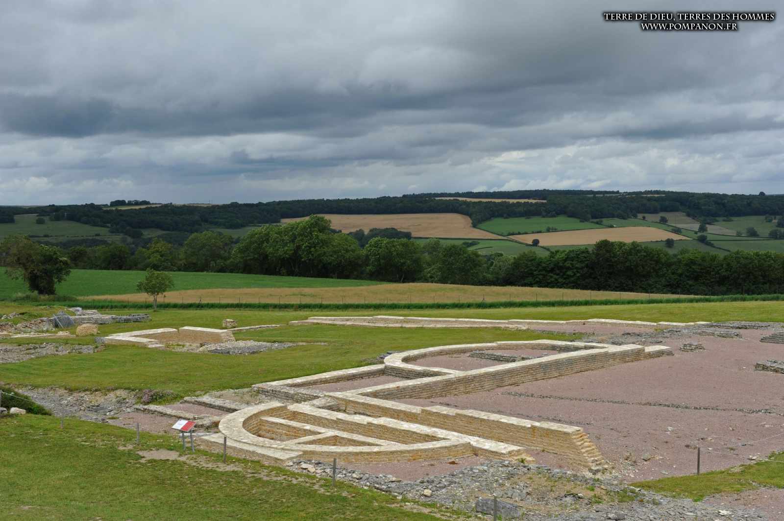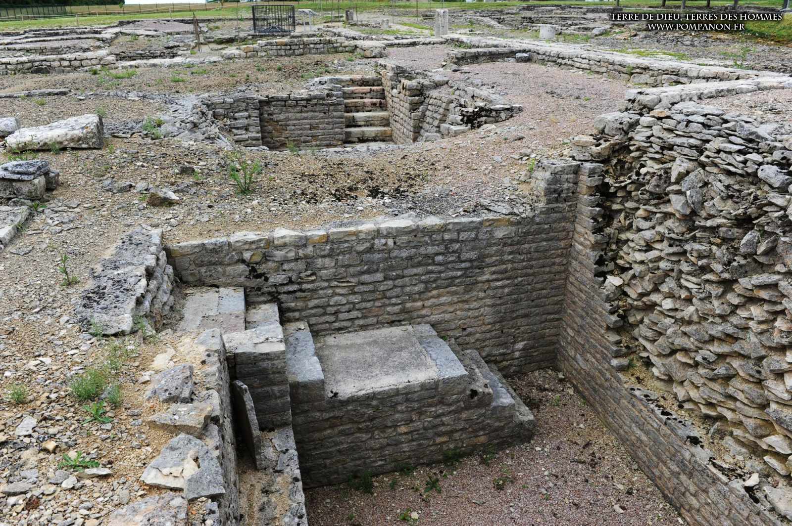 Photos de la ville gallo-romaine d’Alesia occupée du Ier au Ve siècles, après la défaite de Vercingétorix. Images du théâtre, du temple et du Forum. Le sanctuaire d’Ucuetis, divinité protectrice des forgerons, comportait un cour intérieure à colonnes et une crypte. Dans le quartier d’habitation et d’artisanat, on découvre une rue à portiques des fours de bronziers, une maison avec un chauffage par le sol (Hypocauste), un puits et des caves.