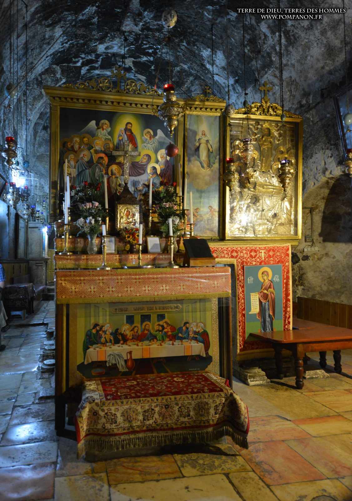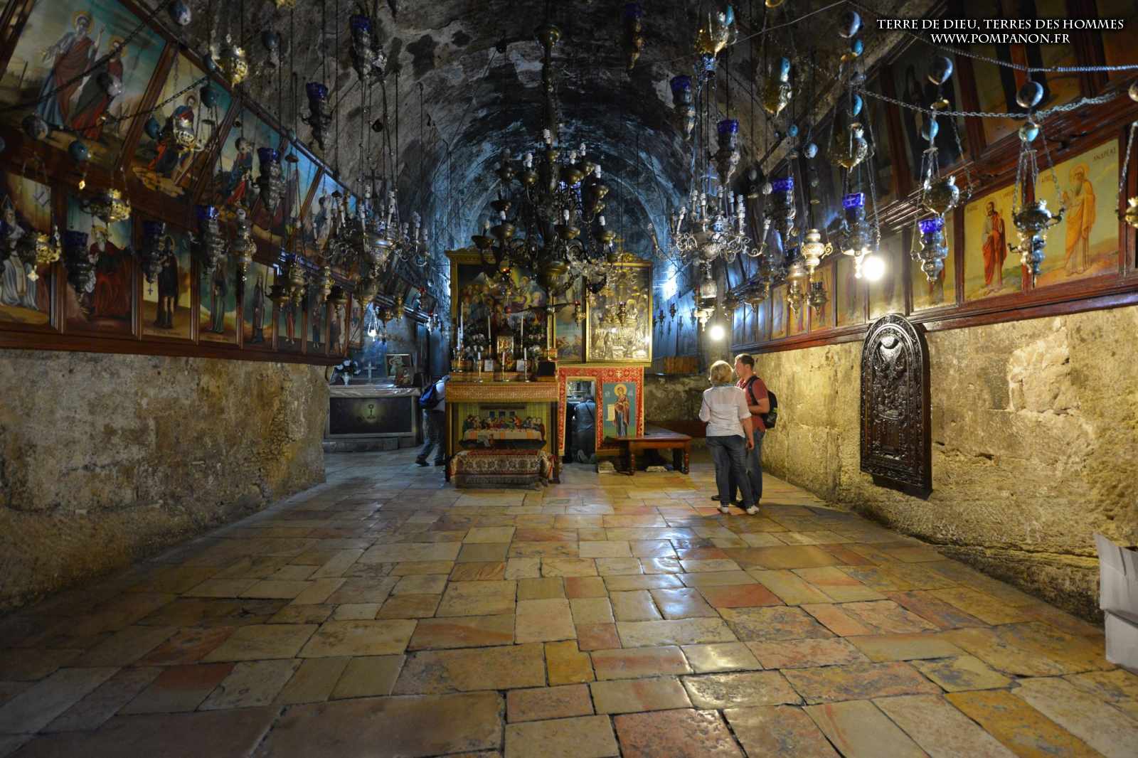 Une grotte voisine, vénérée au 6°s. comme le lieu du dernier repas, devint, au Moyen-Âge la grotte de l’arrestation.