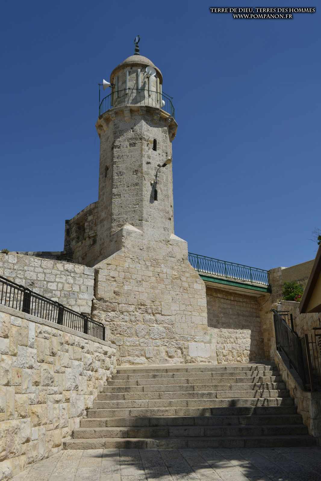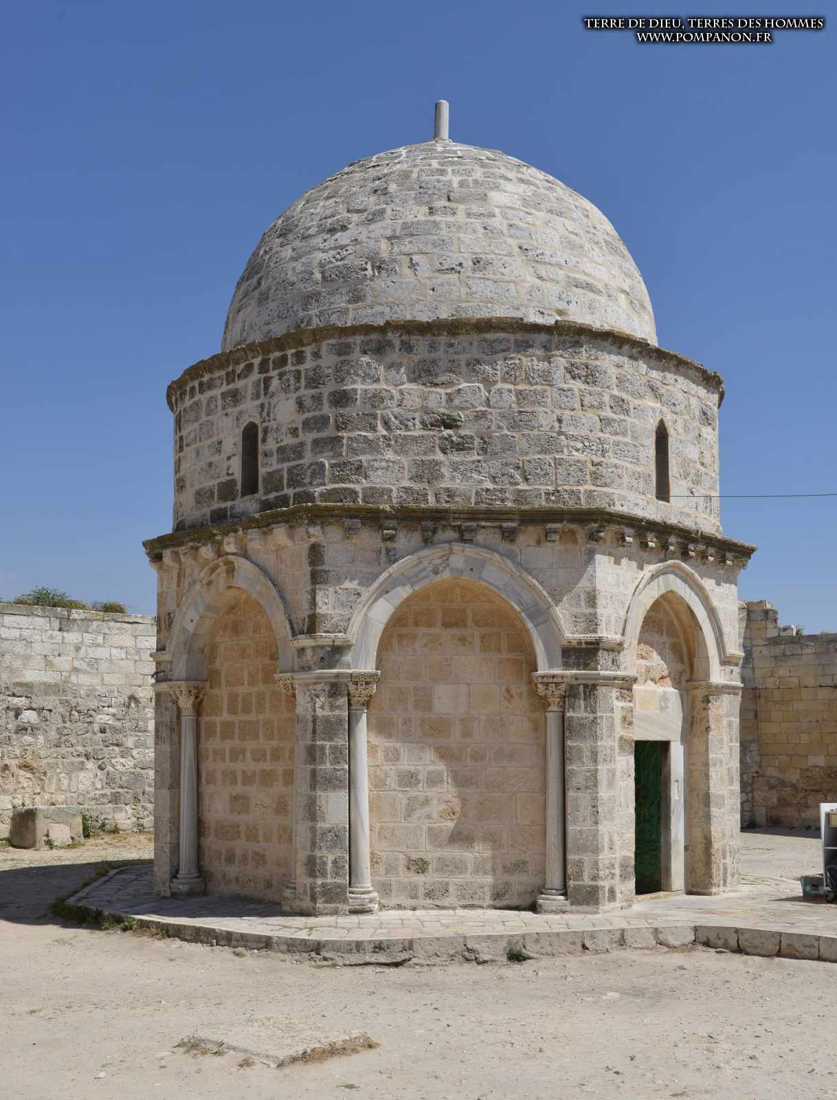 À l’Imbomon («la hauteur» en hébreu) les Croisés construisirent, sur les ruines d’une église byzantine, une chapelle, transformée en mosquée à l’époque de Saladin (12°s.) et coiffée d’une coupole.